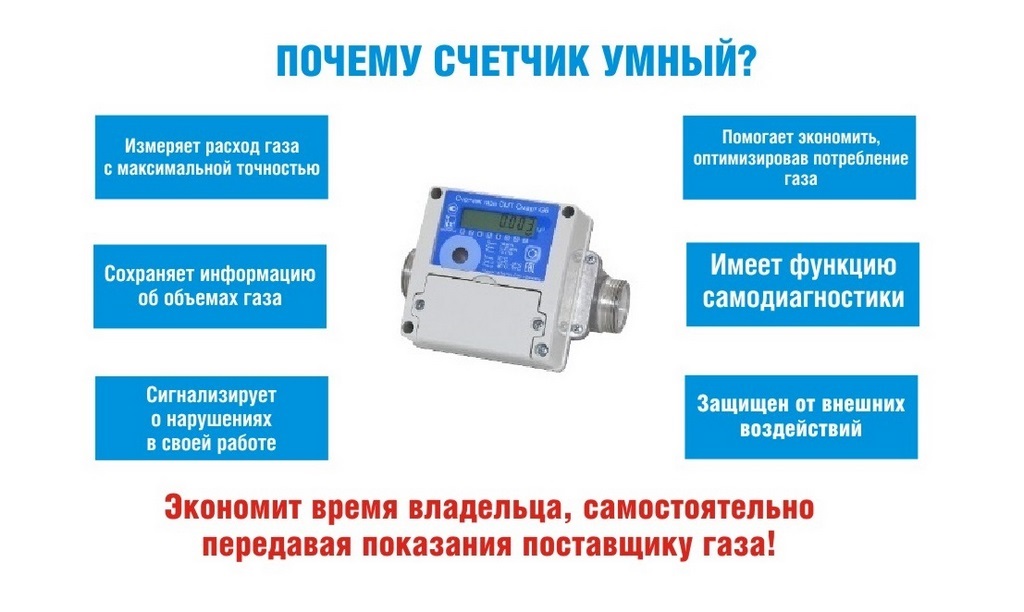 Интеллектуальные счетчики оснащены системой безопасного использования газа. Новые устройства автоматически передают показания потребления поставщику газа и обеспечивают защиту от возможных утечек. Благодаря встроенному запорному клапану и датчику контроля загазованности, система позволяет предотвратить возможные аварийные ситуации, возникающие из-за неправильной эксплуатации газового оборудования.