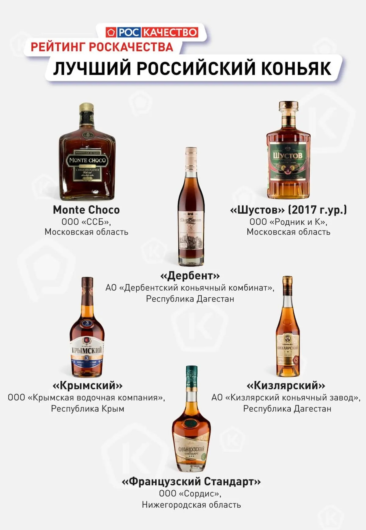 Также в числе предприятий, выпускающих качественную коньячную продукцию, оказались заводы Московской области, Ставропольского края, Республики Крым и Нижегородской области.