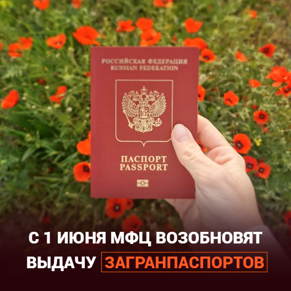 Центры «Мои Документы» с 1 июня возобновляют прием заявлений на выдачу загранпаспортов с