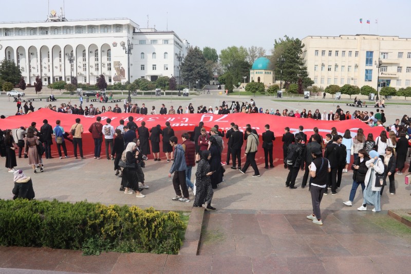 6 октября, в 10:00, ребята из стран-участников СНГ развернут на главной площади столицы Дагестана легендарное путешествующее Знамя Победы размером 65х35 м.