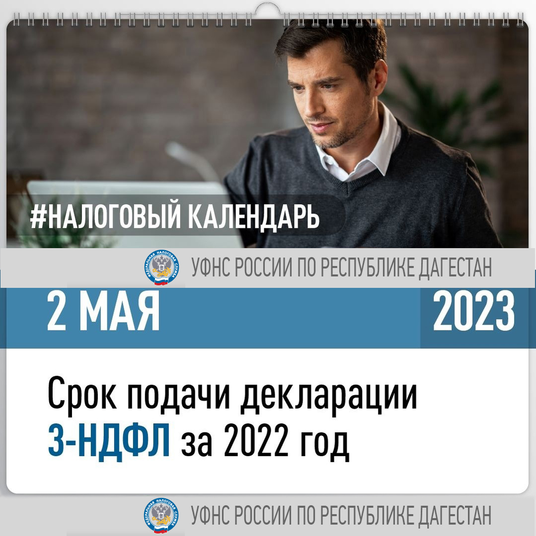Управление Федеральной налоговой службы по Республике Дагестан напоминает, что представить декларацию 3-НДФЛ за 2022 год необходимо не позднее 2 мая .