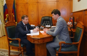 Председатель Народного Собрания Республики Дагестан Заур Аскендеров встретился с депутатом Го сударственной Думы ФС РФ, первым заместителем председателя К омитета ГД по экономической политике, ответственным секретарем Бюро Высшего Совета партии «Е диная Р оссия » Денис ом Кравченко.
