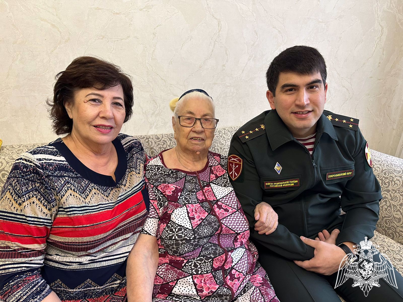В Махачкале росгвардейцы поздравили Юрия Петрухина, Виктора Хрисанова и Ибрагим-Пашу Садыкова. В Кизляре военнослужащие совершили визит к Филиппу Щербакову и Вере Никитиной.