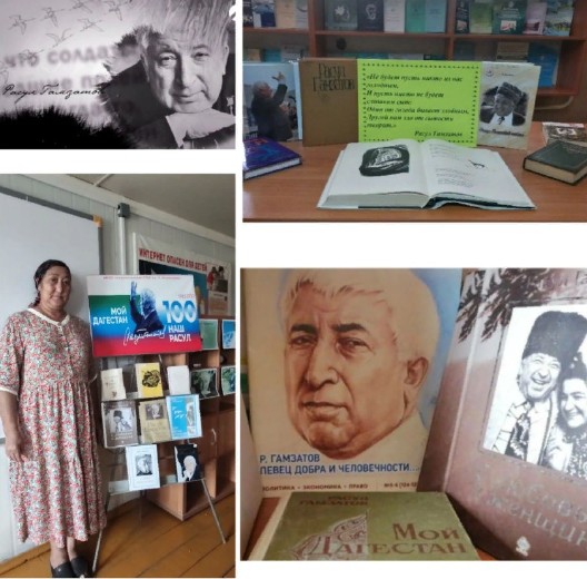 К 100-летию со дня рождения дагестанского поэта Расула Гамзатова в библиотеке МКОУ "Новокосинская СОШ им Х.Исмаилова" Бабаюртовского района была оформлена выставка книг «Поэзия души Расула Гамзатова».