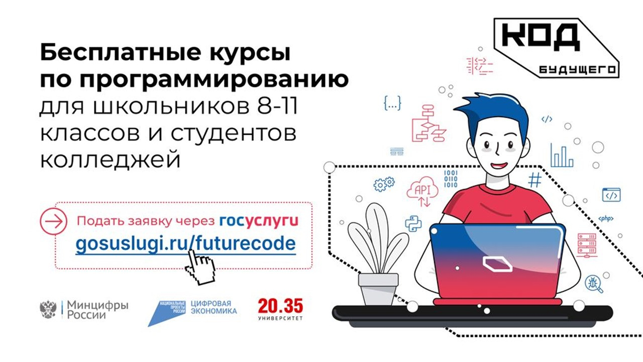 Российские школьники 8-11 классов и студенты колледжей могут бесплатно выучить языки программирования в рамках проекта «Код будущего». Приём заявок на 2023-2024 учебный год стартовал на Госуслугах.