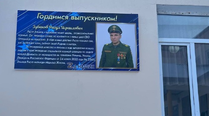 По словам руководства школы, появление баннера на фасаде школы, посвященный Расулу Зубакову, это не только дань уважения выпускнику школы за его героизм, но и честь и гордость.