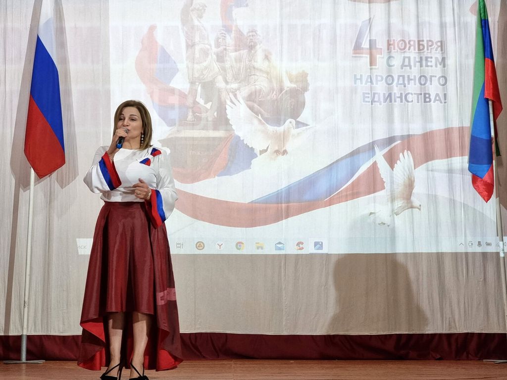 Мероприятие «Единая Россия, единая страна», посвященное Дню народного единства, прошло в концертном зале Центра культуры села Маджалис Кайтагского района, украшенном тематическими баннерами и государственными флагами России и Дагестана.