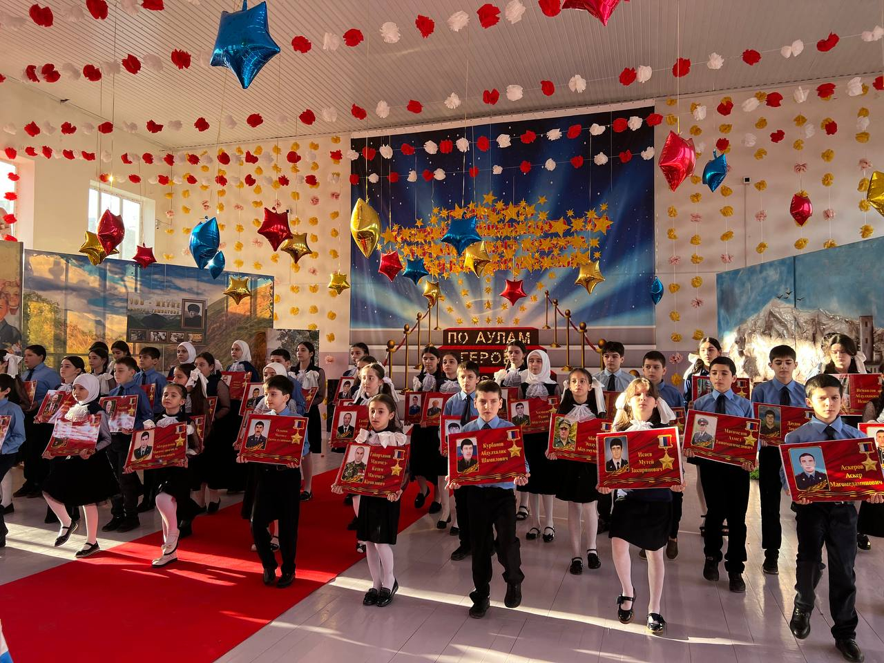 Накануне Дня защитника Отечества в школе №20 г. Махачкалы прошло патриотическое мероприятие «По аулам героев России», посвященное героическим поступкам наших славных героев и изучению малой родины.