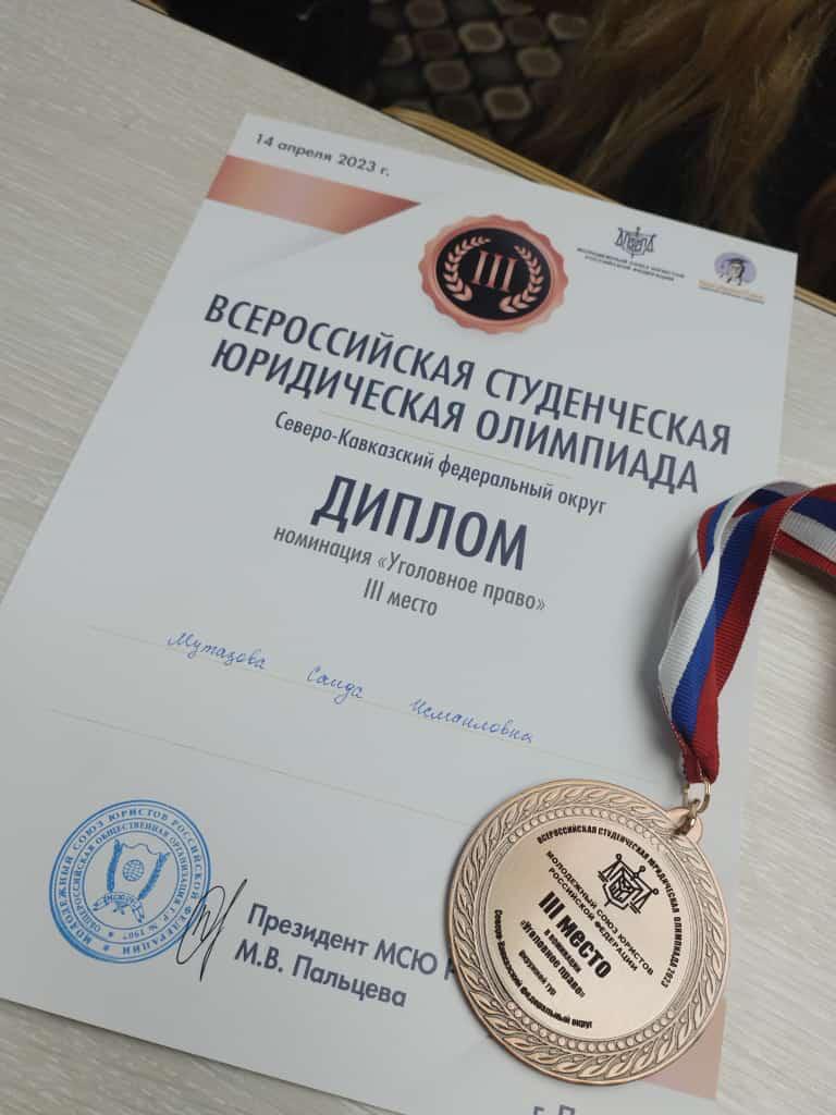 По итогам олимпиады студентка 3 курса Юридического факультета ДГУНХ Мутазова Саида Исмаиловна заняла 3-е призовое место в номинации «Уголовное право» и прошла в финальный тур.