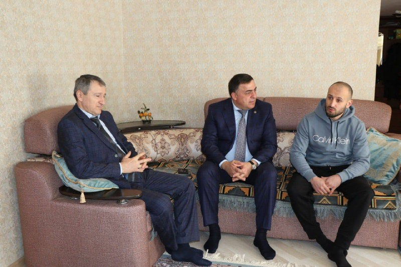 22 февраля в преддверии Дня защитника Отечества, глава Магарамкентского района Фарид Ахмедов совместно с коллегами посетил на дому и поздравил военнослужащего из с.Тагиркент-Казмаляр-участника СВО РФ Примова Руслана Джамалдиновича.