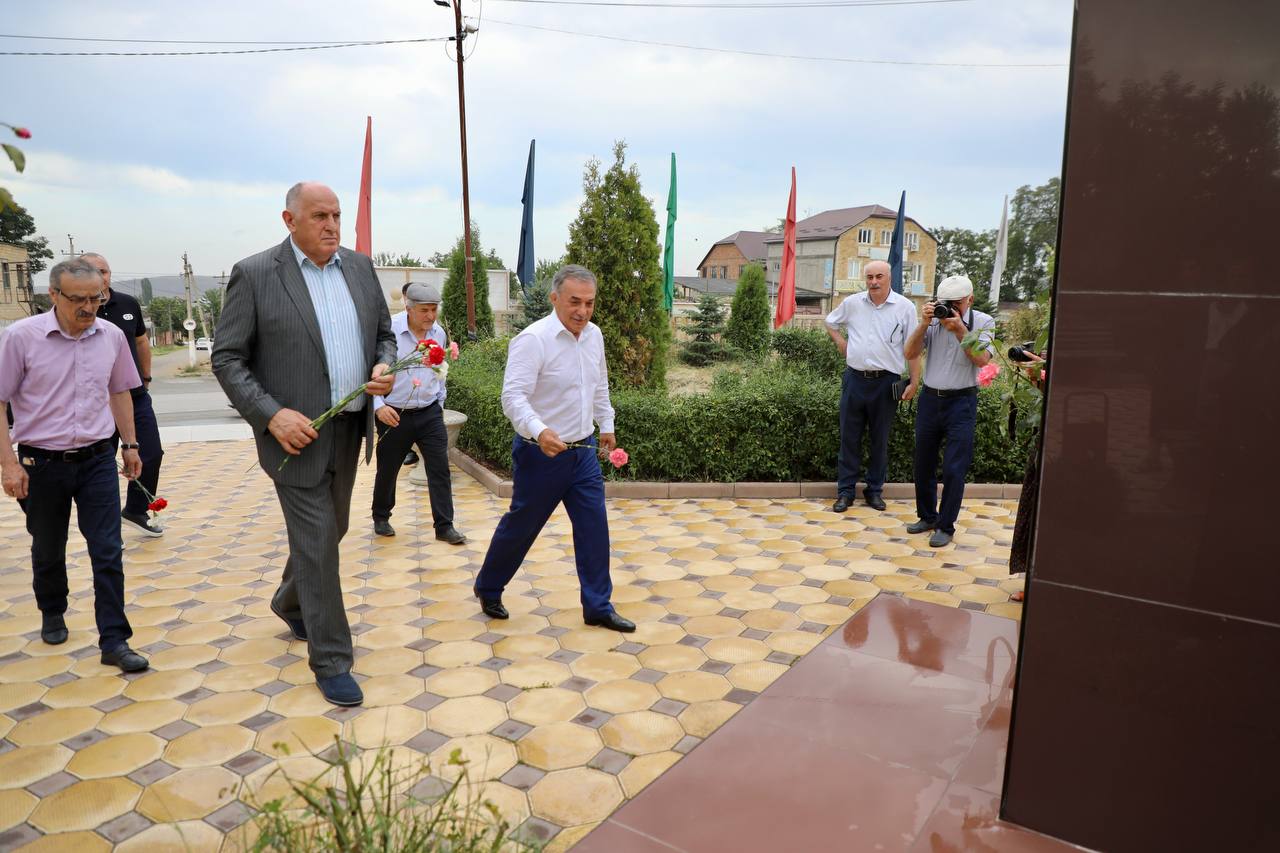 Вместе с премьер-министром память героически погибшего в 2016 году полицейского почтили его отец - депутат Госдумы Нурбаганд Нурбагандов, глава района Магомед Омаров.