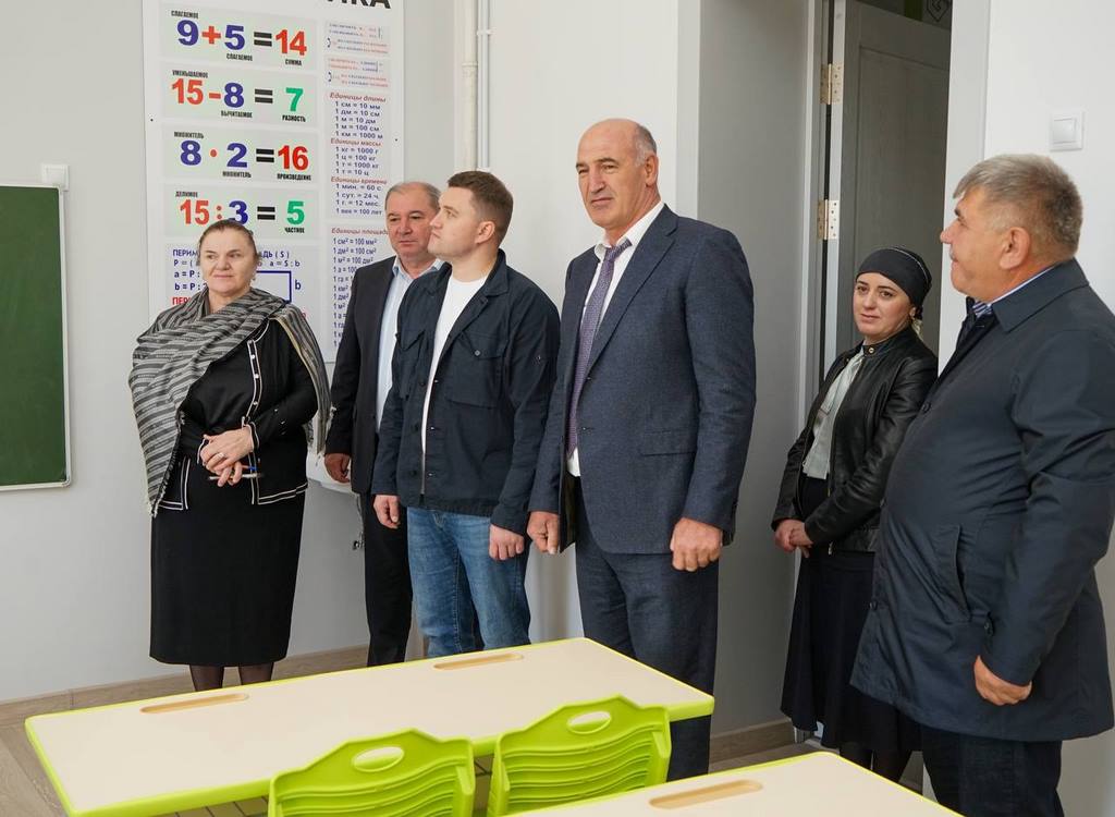 Артем Бичаев совместно с главой района Нурмагомедом Задиевым осмотрели школьные классы, библиотеку, спортивный зал, столовую и двор школы.