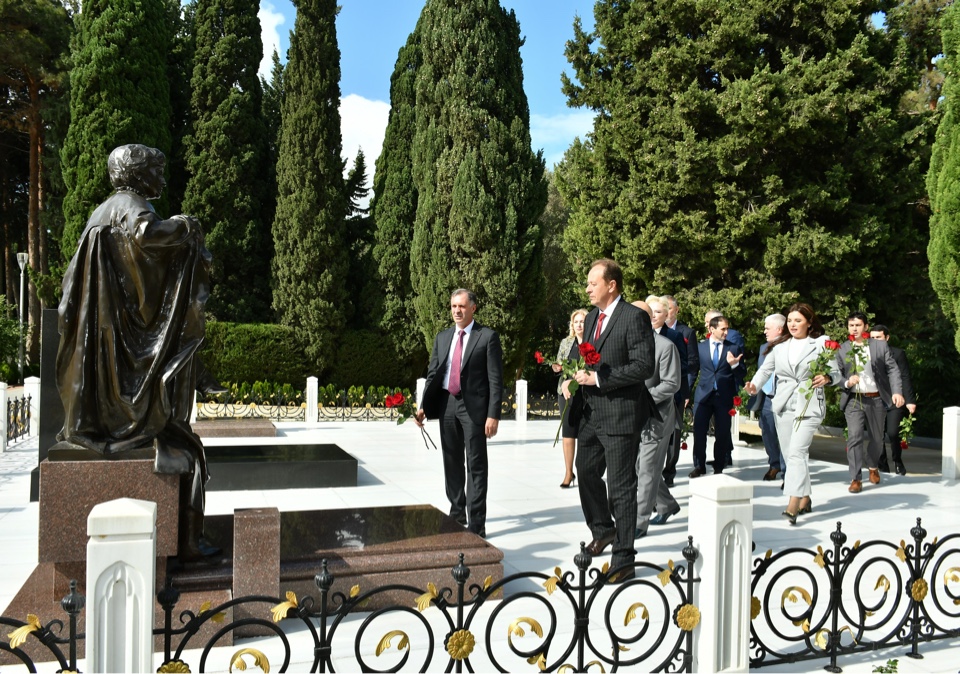 Здесь члены делегации почтили память национального лидера, первого президента Азербайджана Гейдара Алиева и возложили цветы к его могиле.