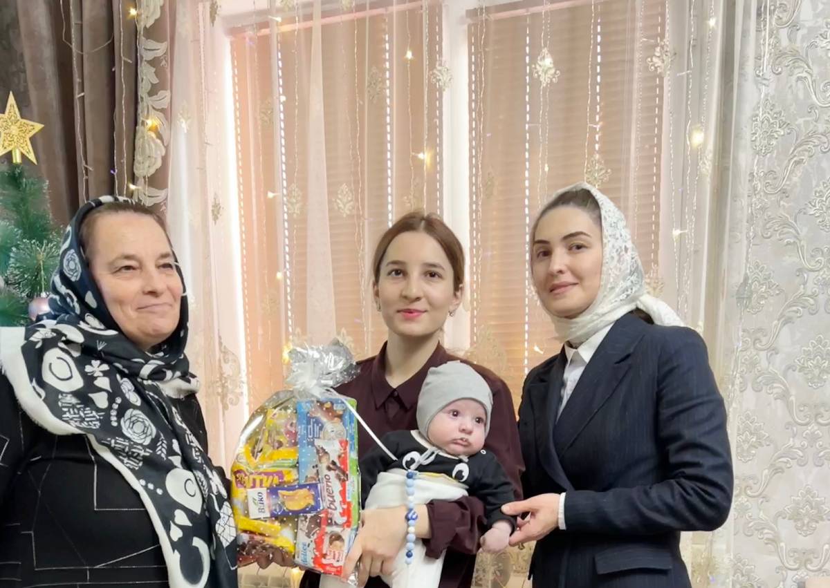 Директор филиала МФЦ по Казбековскому району, помощник депутата-единоросса Раисат Хайбулаева с представителями администрации сел Алмак, Гертма , Инчха, Ленинаул и посёлка Дубки вручила подарки более 70 детям участников СВО на дому.