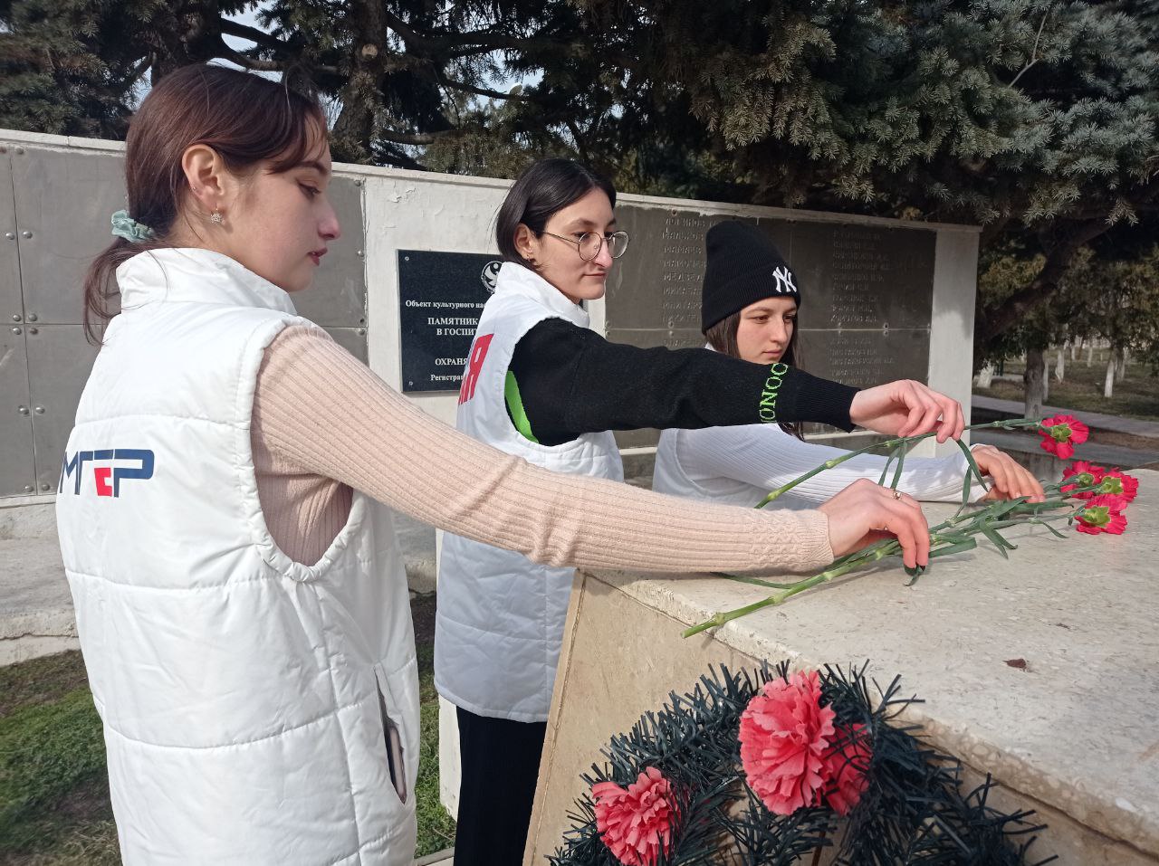 Активисты Избербашского местного отделения «Молодой Гвардии Единой России» возложили цветы к памятнику воинам, умершим в госпиталях в 1941-1945 гг.,