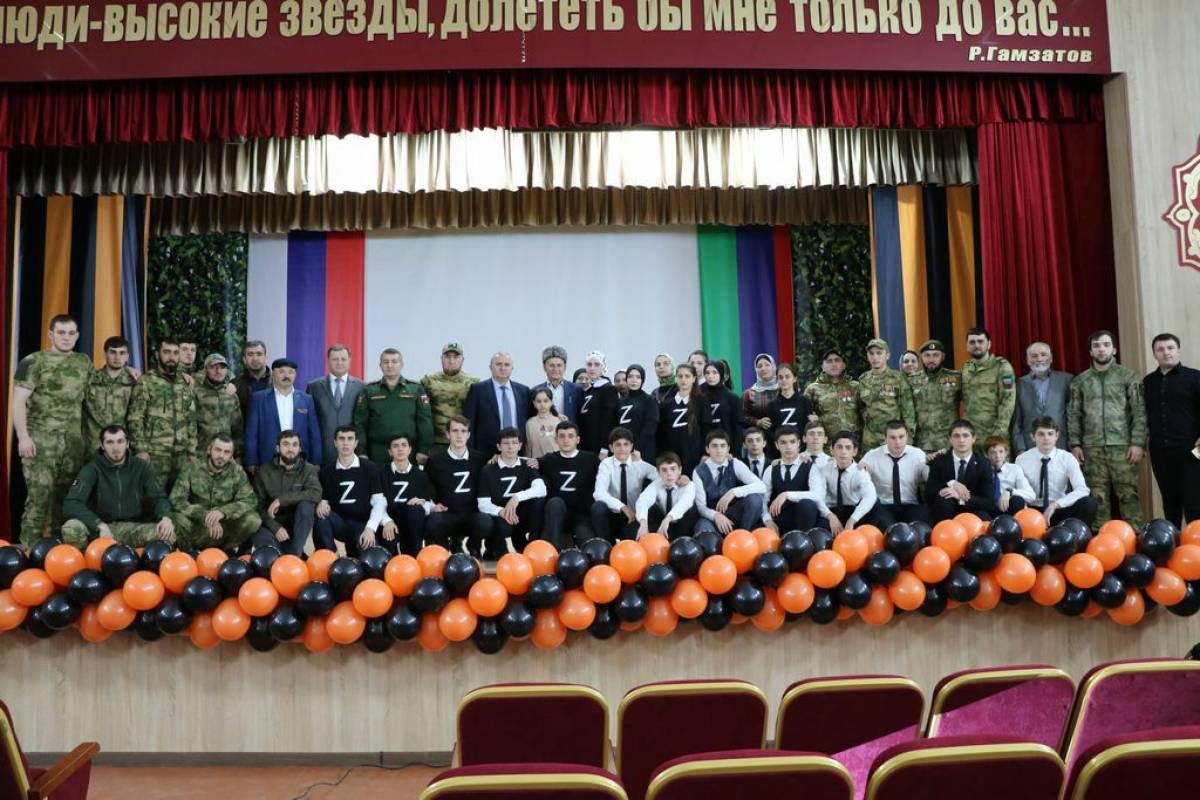 В Казбековском районе по инициативе главы, секретаря местного отделения Партии «Единая Россия» Гаджимурада Мусаева в Большом зале Центра культуры с.Дылым состоялся районный урок мужества ко Дню защитника Отечества. На мероприятие были приглашены старшеклассники со всех школ района, находящиеся в настоящее время в отпуске и на ротации участники спецоперации на Украине, а также представители трудовых коллективов и общественных организаций.