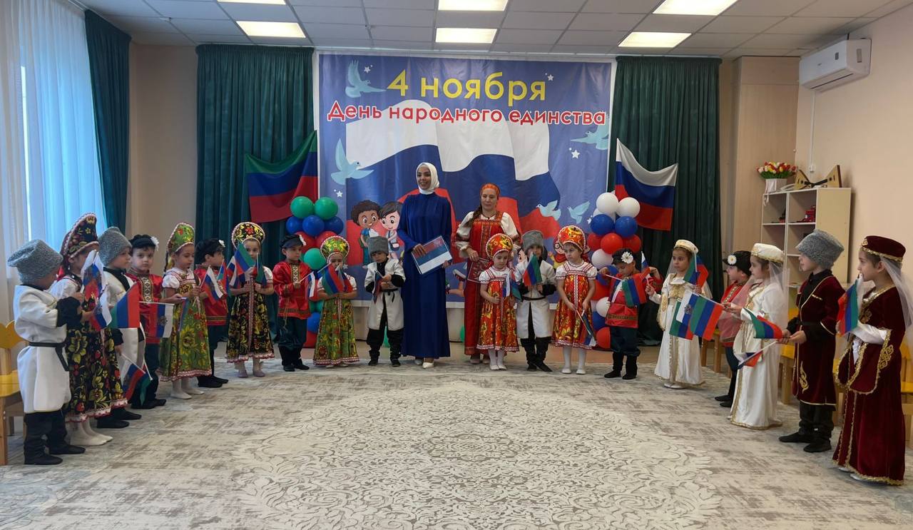 Увлекательные занятия, утренники, конкурсы и эстафеты в рамках праздника организовали для малышей в детских садах. Маленьким гражданам в доступном формате рассказывали о великих событиях, героях и патриотах, которые сделали нашу страну великой и могущественной. Воспитатели постарались зародить в детях чувство гордости за свою родину и понимание важности единства народов. Дети читали стихи и пели песни, в которых по-детски искренне признавались в любви своей многонациональной великой стране.