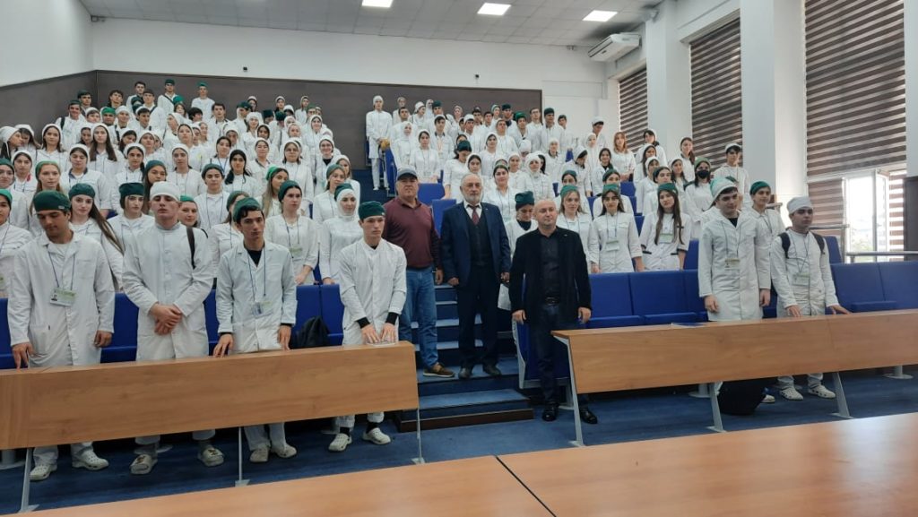 Известный писатель, автор многих книг, в произведениях которого раскрываются характеры главных сыновей страны гор, его герои — это строители, врачи, космонавты, обычные труженики, Левсет Дарчев презентовал свою книгу «Хирург». Это произведение о жизни и деятельности академика Р.П. Аскерханова – светила медицины. Отвечал на вопросы студентов и сам задавал вопросы. А самым смекалистым студентам подарил свои книги с подписью автора.
