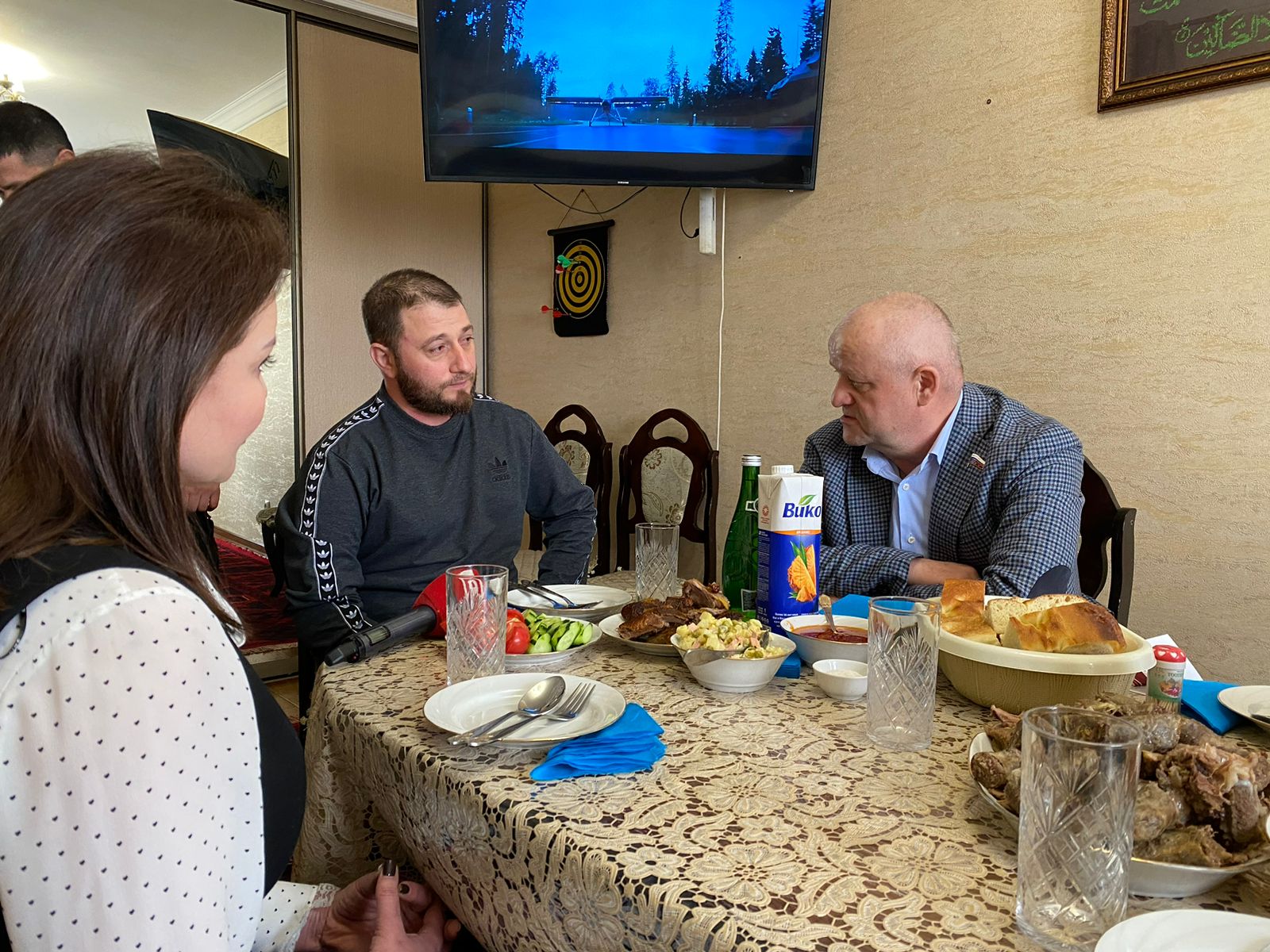 Парламентария сопровождали заместитель командира Махачкалинского соединения по военно-политической работе Росгвардии полковник Василий Липатов, командир отдельного батальона Махачкалинского соединения Росгвардии подполковник Мурадхан Ахмедханов, председатель дагестанского отделения профсоюза работников здравоохранения РФ Зумруд Бучаева.