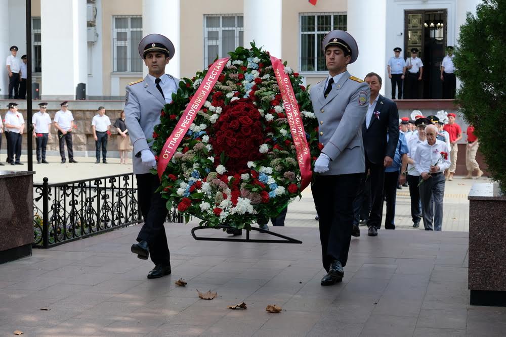 В церемонии приняли участие председатель Народного Собрания РД Заур Аскендеров, заместитель председателя регионального Правительства Рамазан Джафаров, руководители правоохранительных структур республики, представители министерств и ведомств региона, юнармейцы и кадеты.