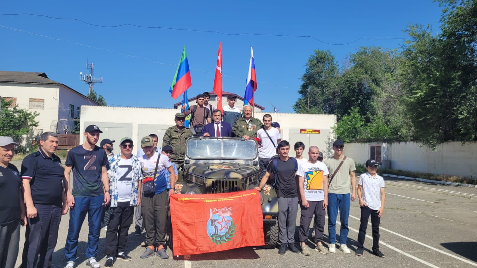 Провожать призывников пришли военный комиссар Шейхсаид Магомедов , депутат НС РД Г аджи Биярсланов и ветеран Афганистана, руководитель местного Кизилюртовского объединенного отделения «Боевое братство» Дада Гаджиев .