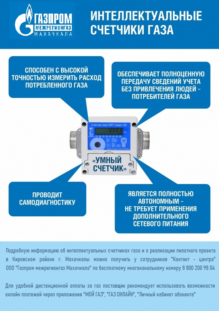 Интеллектуальные счетчики обладают и рядом других преимуществ, в том числе предусмотрена автоматическая передача показаний в базу данных поставщика газа, и потребителю не нужно делать это вручную, ежемесячно беспокоясь о своевременной передаче данных до 25 числа.