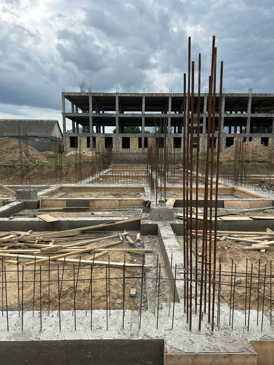 На сегодняшний день на объекте подготовлена строительная площадка с установкой временных ограждений, выполнены земляные работы, строительно-монтажные работы по Блоку №1, завершены работы по устройству котлована, ведутся работы по устройству железобетонных фундаментов блоков №2-5, и общестроительные работы по блоку №1.