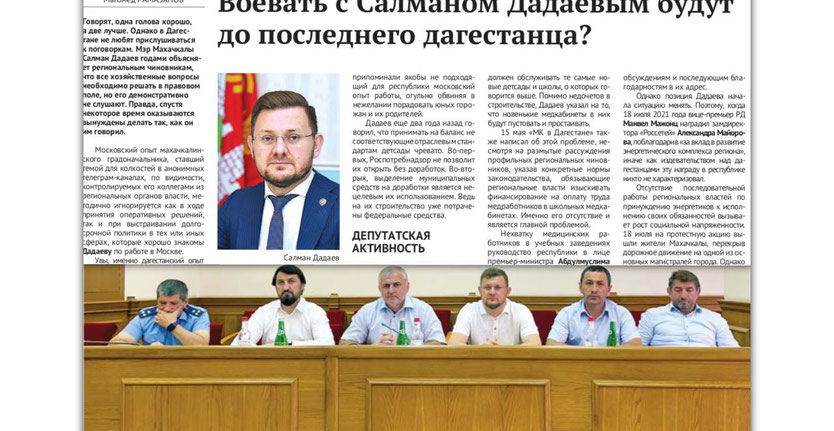 Текст отчёта опубликован в газете «Махачкалинские известия».