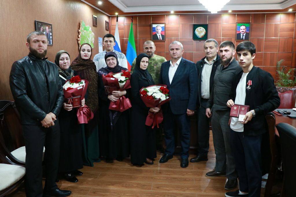 В знак признания мужества и героизма военнослужащих, которые отдали свои жизни за защиту страны, глава района передал родителям ордена Мужества погибших воинов, а матери погибшего Магомедарипа Абубакарова вручил медаль Жукова.