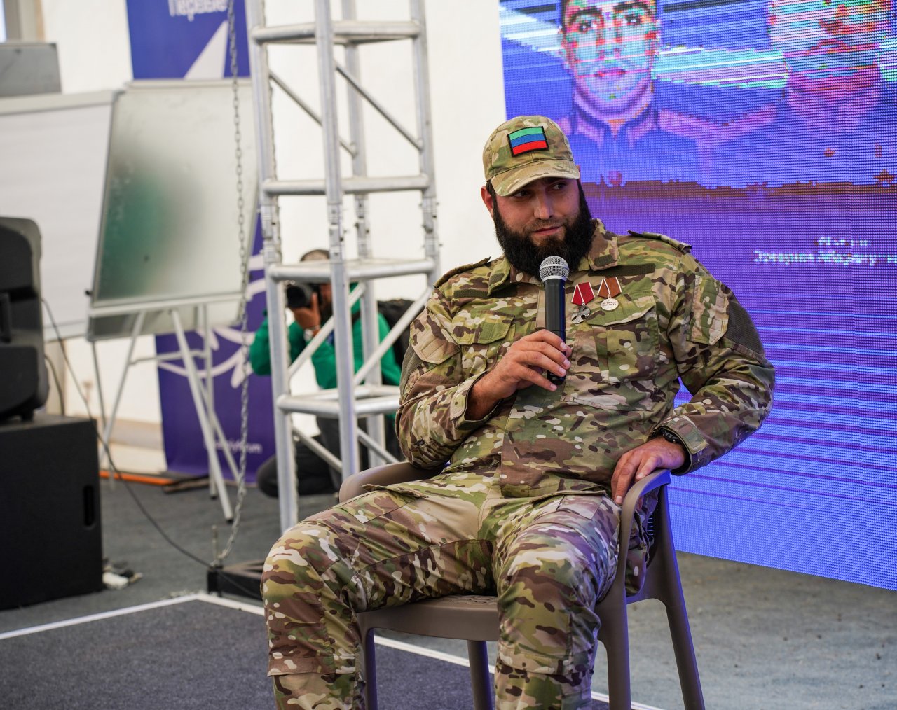 17 сентября на Северо-Кавказском молодежном образовательном форуме "Каспий-2023" прошла дискуссионная площадка с участием кавалера Ордена Мужества, участника Специальной военной операции Абдулкерима Умарова. Также к мероприятию присоединились другие участники СВО. Зал встретил героев стоя, громкими аплодисментами.