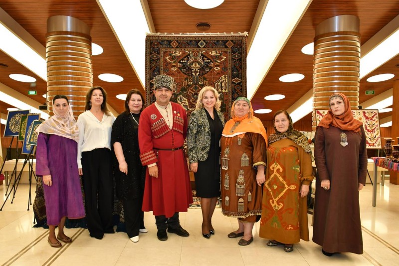 В экспозиции были представлены: золотая вышивка, унцукульские изделия ручной работы, табасаранские ковры, балхарская керамика и многое другое, которые ярко отражали многоликую культуру Дагестана . Особого внимания удостоилась Кайтагская вышивка, сувенирные изделия и тарелки, исторические кайтагские таблички. Помимо презентации, Зубайдат Гасанова провела мастер-класс, в ходе которого поделилась с гостями праздника секретами уникального мастерства.