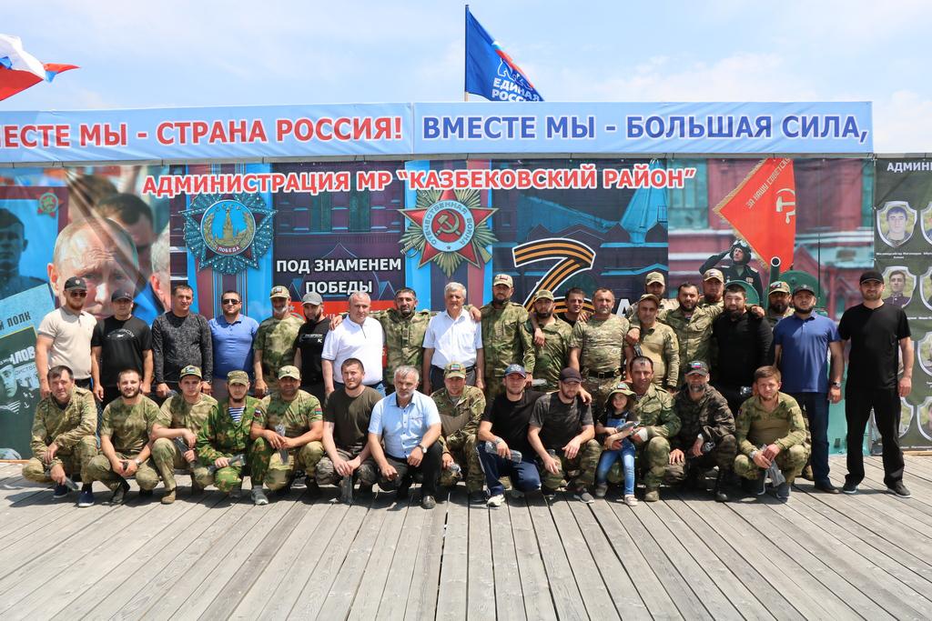 На торжественном митинге всех поздравил с праздником глава муниципалитета Гаджимурад Мусаев: «Россия — великая страна, где в согласии проживает многонациональный и многоконфессиональный народ, именно поэтому наша страна сделала первый шаг в поддержку угнетенных людей на Донбассе и Луганщине. С самого начала СВО казбековские ребята мужественно защищают интересы нашего Отечества, противостоят на ее рубежах нацистам и сатанистам. Подтверждением тому являются многочисленные государственные награды, которые они получают от командования, некоторые удостоены высоких наград посмертно. Вечная память героям СВО, павшим на полях сражений, их имена навсегда вписаны в историю! Желаю всем мира и добра! Вперёд, Россия!»