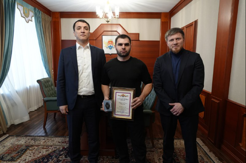 По поручению главы г. Махачкалы Юсупа Умавова временно исполняющий обязанности главы города Нариман Темуркаев встретился с Ризваном и отметил его героический поступок. От имени администрации города ему была вручена благодарность за отвагу, смелость и решительность, проявленные при спасении людей, а также памятный подарок.