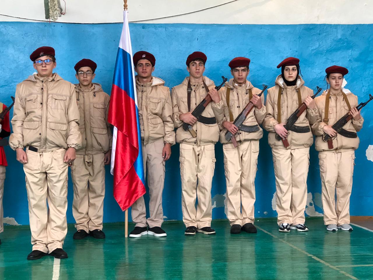 Муниципальный этап Республиканского смотра-конкурса школьных знамённых групп «Равнение на флаг» провели в Казбековском районе