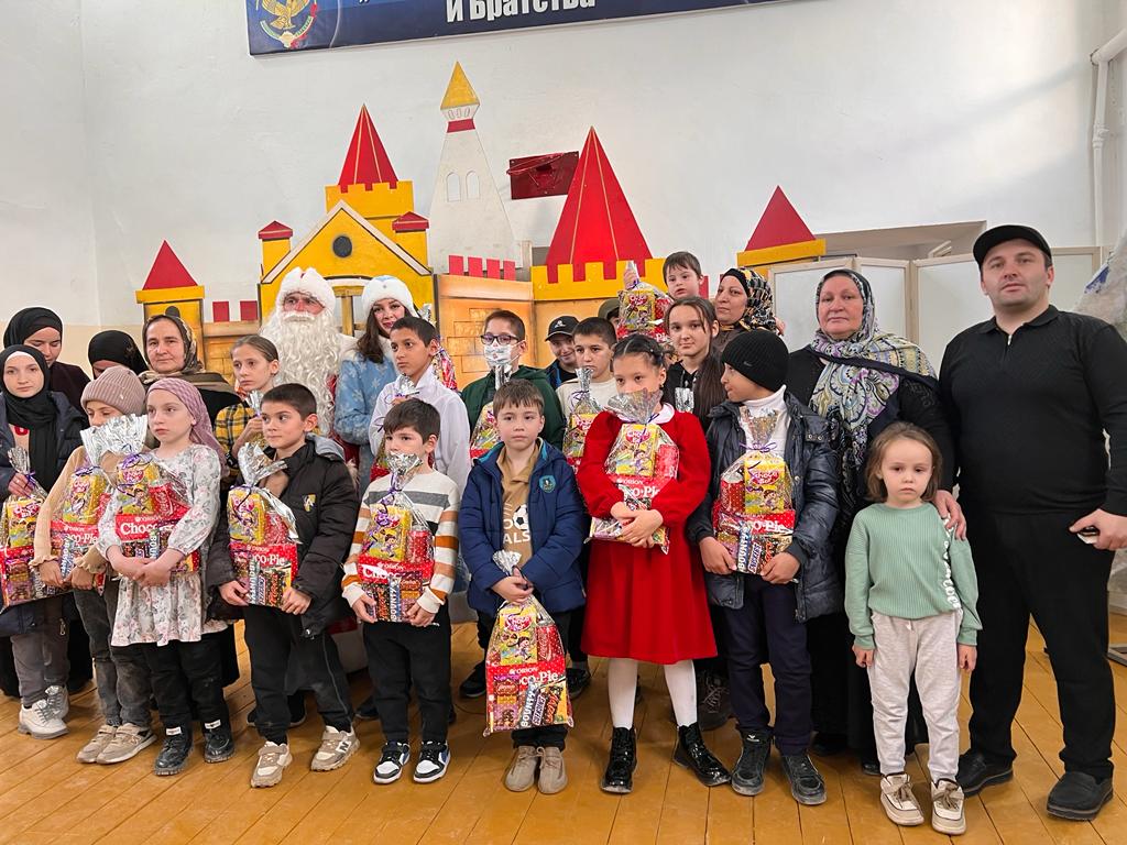 ,, с Инчха» Улуби Улубиева пожелала детям крепкого здоровья и мирного неба над головой. В конце праздника Дед Мороз и Снегурочка вручили сладкие новогодние подарки детям от главы МО АСП