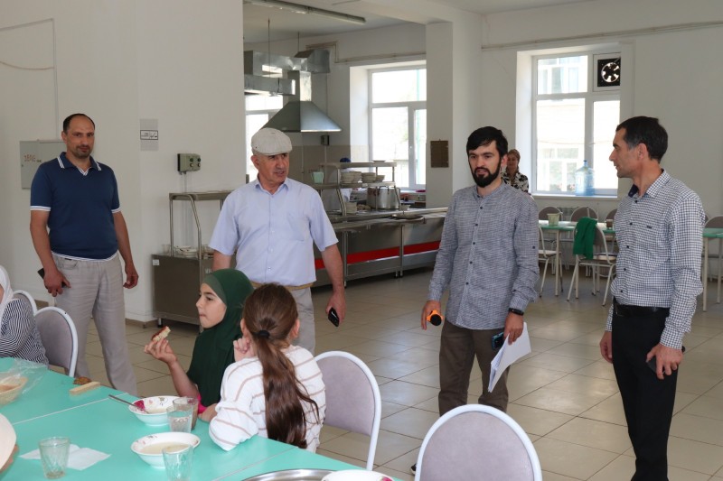 В сопровождении директора Мискинджинской СОШ Саджада Казиева, гости осмотрели пищеблок школы, проверили организацию горячего питания и качество готовых блюд, состояние производственного оборудования пищеблока.