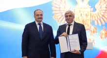 Сергей Меликов вручил Главе Новолакского района Мамати Гамзатову Благодарность за активное участие в избирательной кампании по выборам Президента РФ