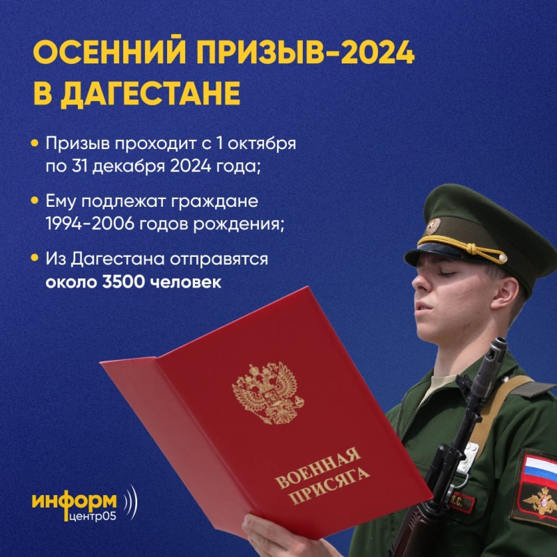 В рамках осеннего призыва 2024 года Дагестан направит 3,5 тысячи новобранцев.
