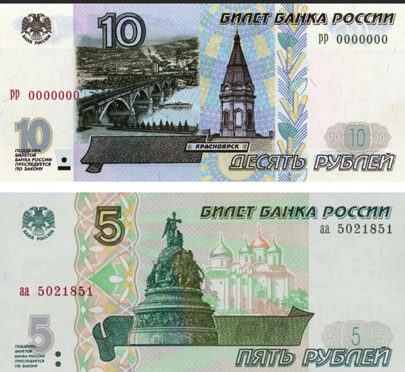 В России возвращают в оборот купюры номиналом 5 и 10 рублей.
