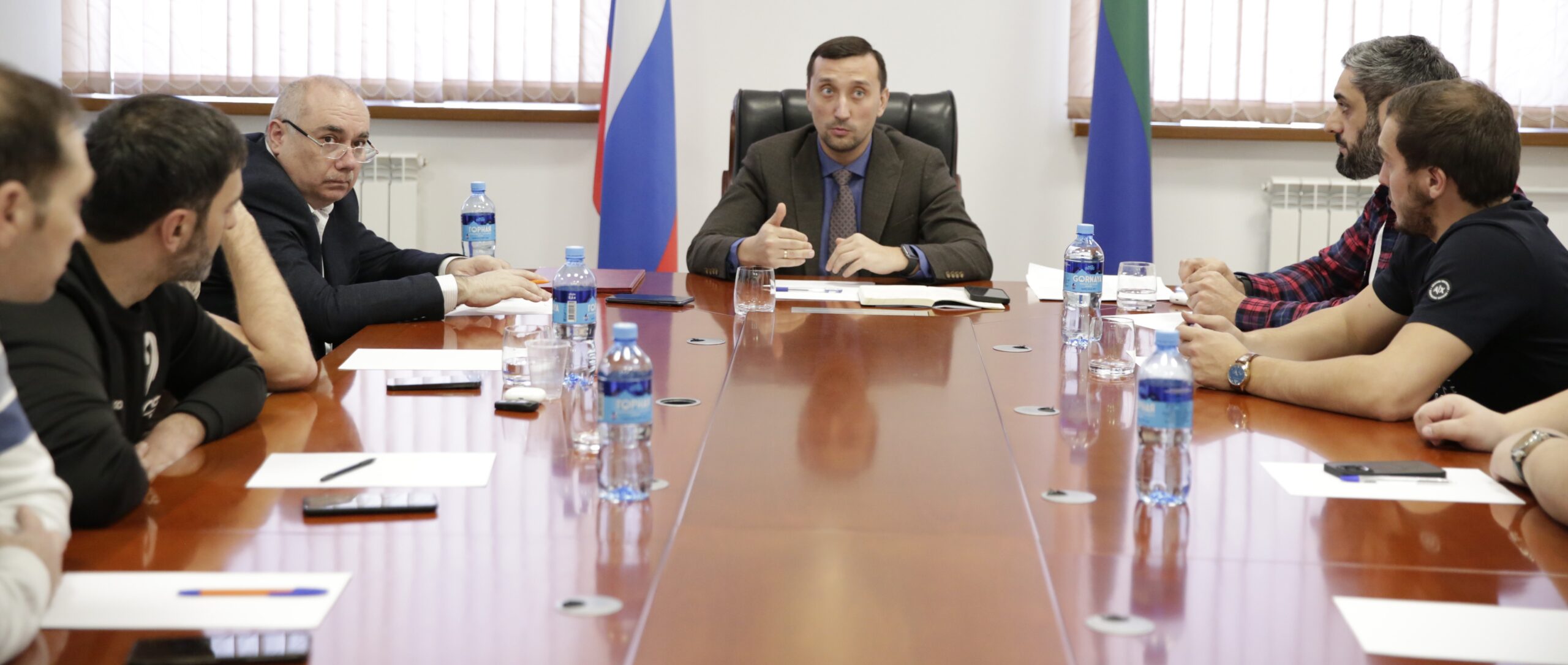 В Министерстве спорта РД состоялась встреча руководителя проектного офиса взрослого массового футбола РФС Сергея Бадальянца, представителей региональной федерации футбола Шихабудина Микаилова и Вайланмата Вайланматова, а также представителей восьми лиг массового футбола.