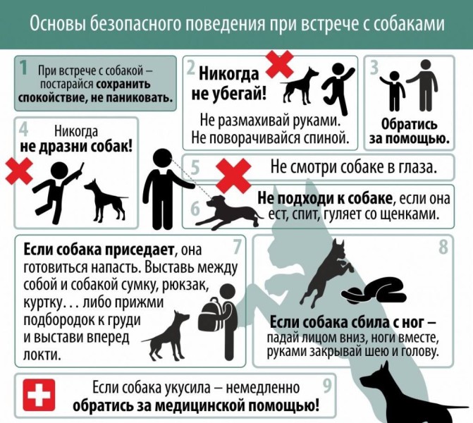 - Выбирайте безопасный маршрут передвижения (в обход тех мест, где можно встретить стаю бездомных собак).