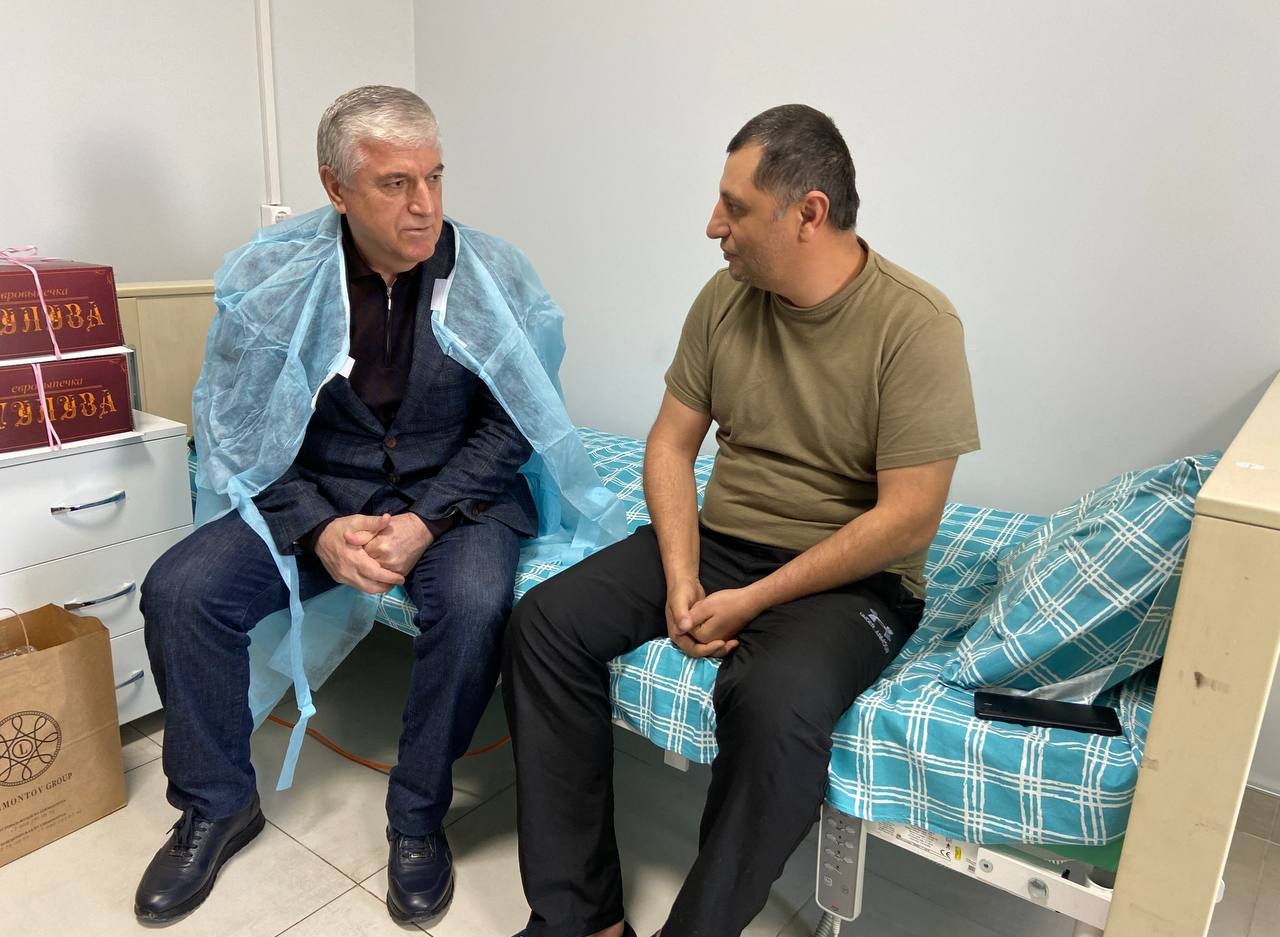 Глава г. Махачкалы Юсуп Умавов навестил участника СВО Агарзу Гаджиева, который проходит курс лечения в медицинском центре «Здоровье» в Махачкале.