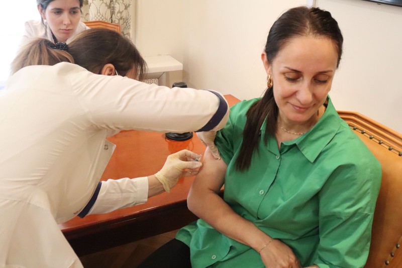 «Сейчас самый оптимальный период для проведения прививки против гриппа. Важно защитить себя от инфекции заранее, чтобы не отрываться от рабочего процесса. Мы с семьей ежегодно прививаемся», - поделилась консультант отдела управления имуществом Габибат Магомаева.