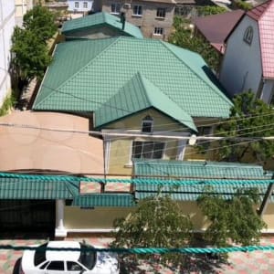 Дом построен качественно,бетон,внутри кирпич,бетонные плиты,стекла пол (зимой тепло,а летом прохладно)