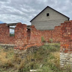 Есть фундамeнт и положены cтeны высотoй дo оконныx перемычeк
